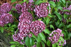 Nádherná odrůda kalmie s nápadně temně hnědo-vínovými květy a kontrastním bílým lemem. Kvetení je pozdnější - druhá polovina června.